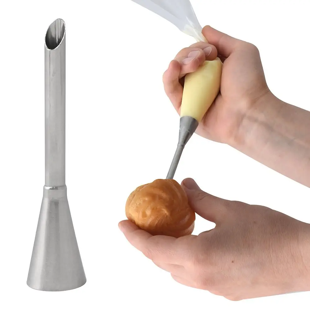 Насадка предназначена для наполнения эклеров, профитролей и другой выпечки начинкой. Очень удобна в использовании. Вы оцените по достоинству это приспособление, потому что Вам больше не придется задумываться о том, как аккуратно наполнить выпечку начинкой, не оставляя при этом следов и разрезов. Благодаря тонкому носику насадки Вы сможете аккуратно проникнуть внутрь выпечки и заполнить ее начинкой.