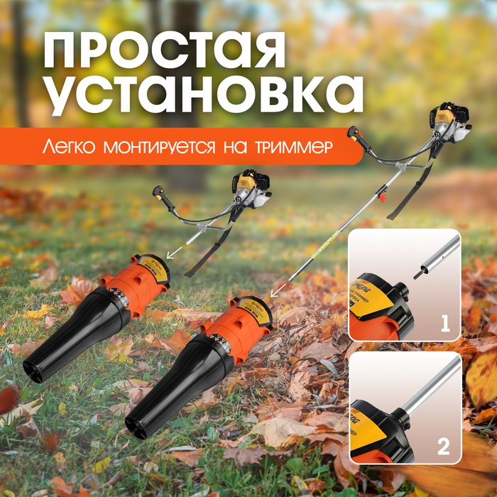 Насадка на триммер ТУНДРА, воздуходувка, посадочное место 26 мм, шкив 9 зубьев