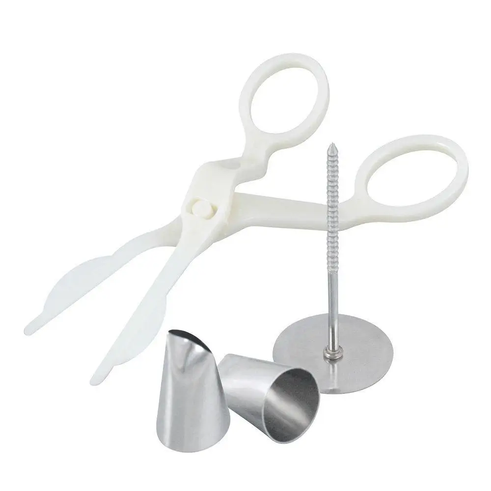 Насадки выполнены из нержавеющей стали, имеют прорези в виде лепестков, из которых формируются кремовые цветы. Специальный кондитерский гвоздь предназначен для формирования цветов на плоской поверхности. Для переноса цветка используются ножницы, позволяющие аккуратно захватывать розочку, чтобы не повредить ее.