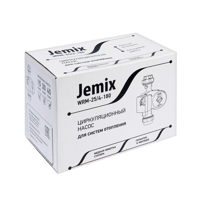 Насос циркуляционный JEMIX WRM-25/4-180, 70/50/35 Вт, напор 3.5м, 40/30/15 л/мин, без кабеля