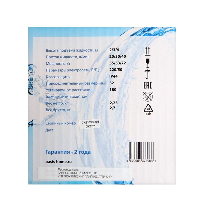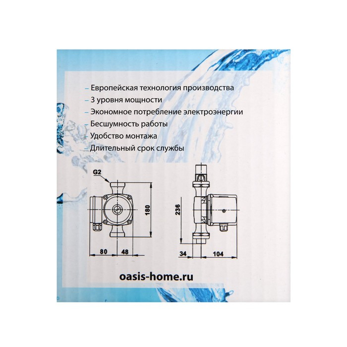 Насос циркуляционный Oasis C 32/4, напор 4 м, 40 л/мин, 35/53/72 Вт