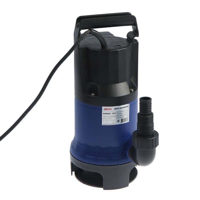 Насос фекальный JEMIX Ф-КОМБИ-175-7, 550 Вт, напор 7 м, 175 л/мин, диаметр частиц 35 мм