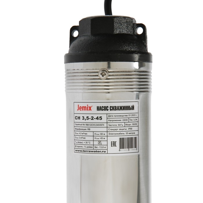 Насос скважинный JEMIX СН 3,5-2-45, центробежный, 550 Вт, напор 60 м, 75 л/мин, кабель 35 м
