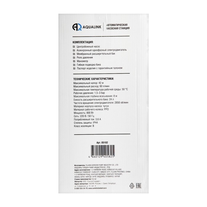 Насосная станция AQUALINK AS CI-42/60-24, 800 Вт, 60 л/мин, напор 60 м, бак 24 л