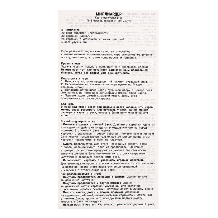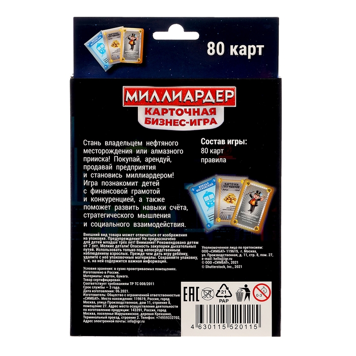Настольная игра «Миллионер», 80 карточек