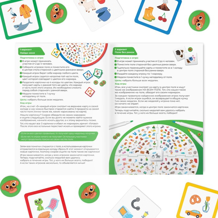 Настольная игра «Найди и покажи!» на поиск, 60 двухсторонних карт, 60 медалей, двухстороннее поле, 4 маркера, 3+