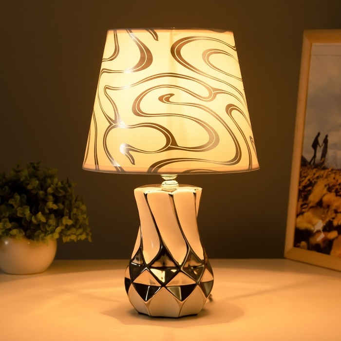 Настольная лампа "Эльга" Е14 40Вт бело-серебристый 20х20х34см RISALUX
