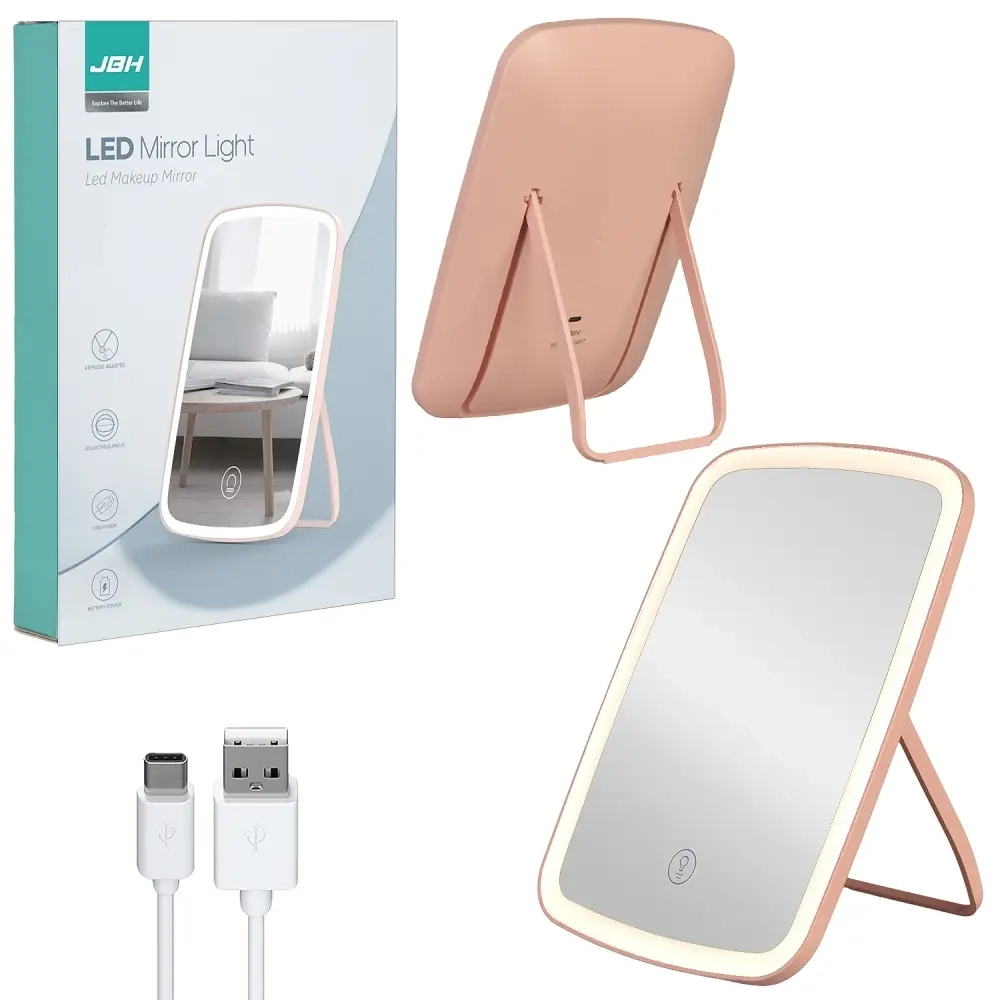 Настольное зеркало для макияжа с подсветкой A3 JBH розовое