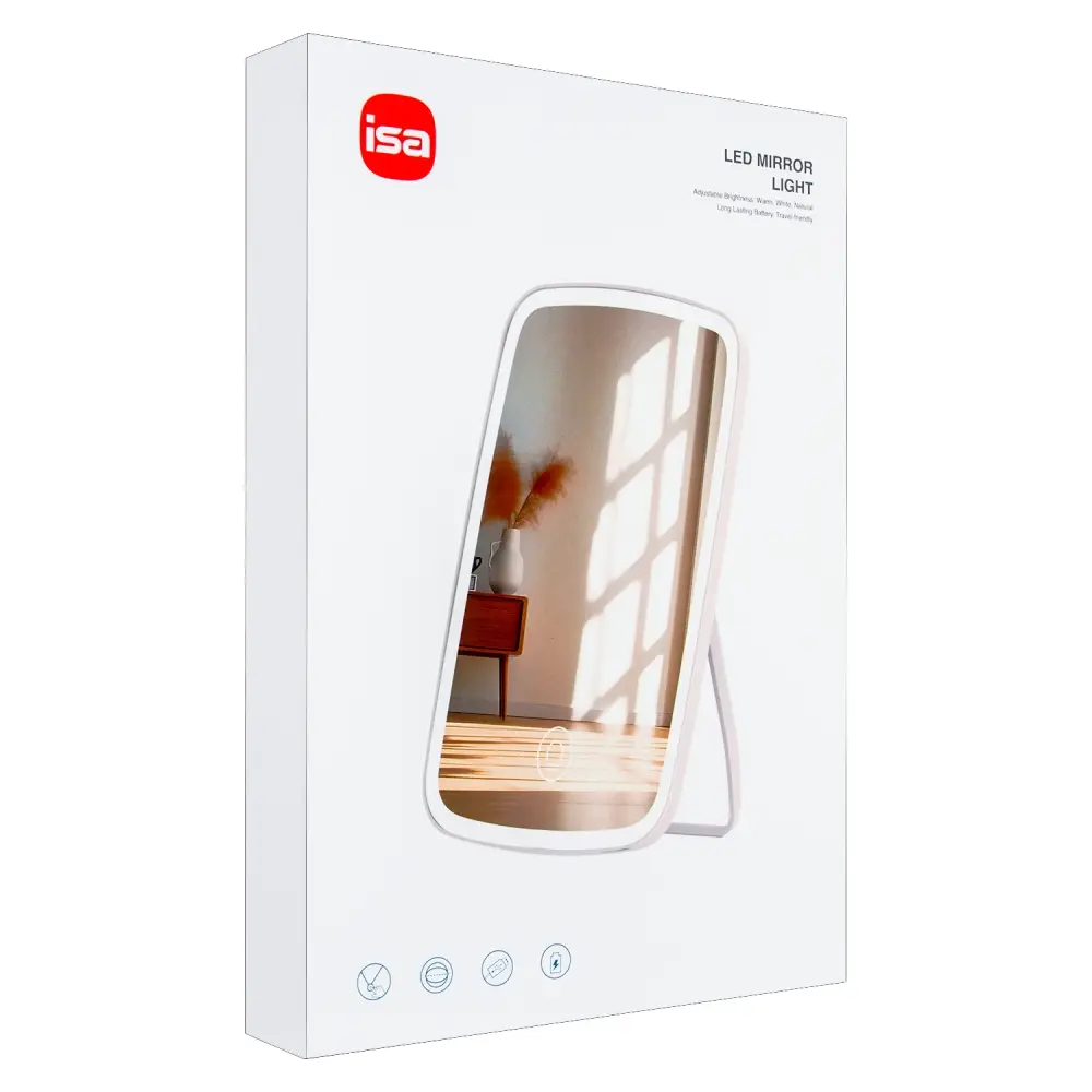 Настольное зеркало для макияжа с подсветкой ML-07 ISA розовое