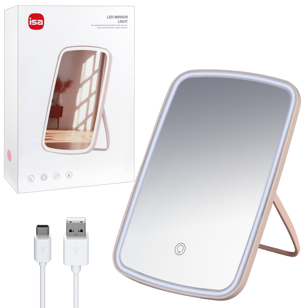 Настольное зеркало для макияжа с подсветкой ML-07 ISA розовое