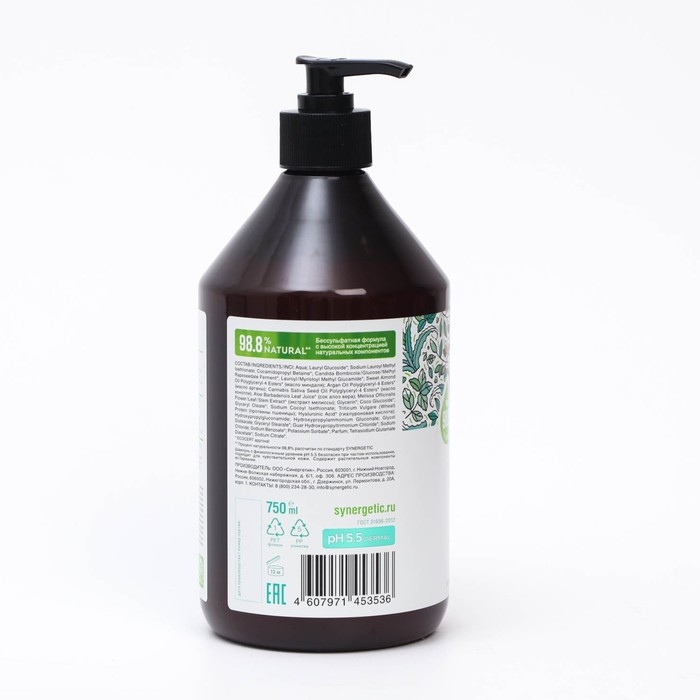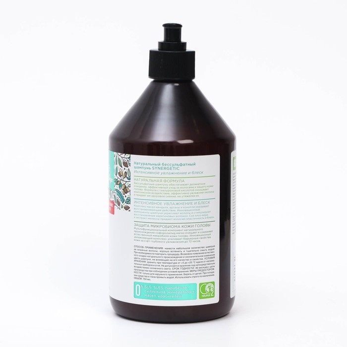 Натуральный бессульфатный шампунь SYNERGETIC Интенсивное увлажнение и блеск , 0,75 мл