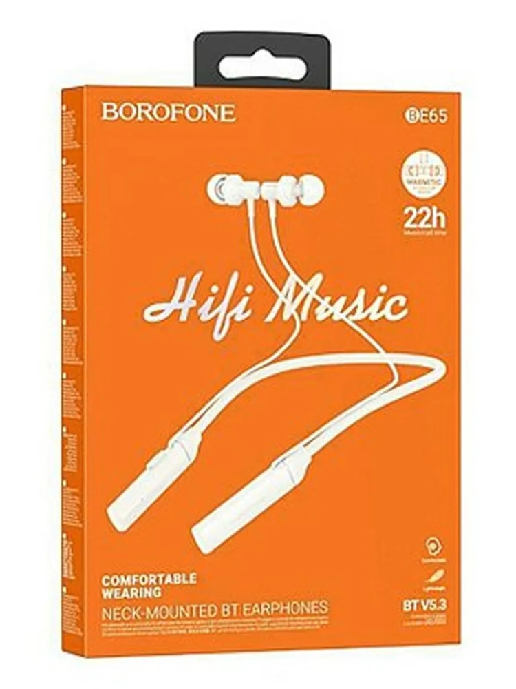 Беспроводные наушники Borofone с шейным ободом идеально подходят для занятий спортом, а также и для обычного прослушивания музыки при прогулке, поездке.