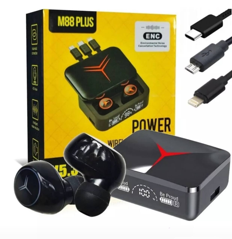 Беспроводные Bluetooth наушники M88 PLUS отличный подарок для любителей музыки и активного образа жизни! Наушники совместимы со всеми устройствами, благодаря чему они работают на любом смартфоне, ноутбуке, планшете, имеющем систему беспроводной связи Bluetooth, а их эргономичная форма позволяет комфортно использовать беспроводные наушники вкладыши в течении всего дня. Беспроводные наушники от Gerlax оснащены кейсом PowerBank. Заряда батареи в беспроводных наушниках M88 PLUS хватит на 5 часов прослушивания музыки и до 200 часов с перезарядкой от кейса. Беспроводные наушники удобно сидят в ухе и подходят для активного спорта. Наушники имеют качественный звук благодаря технологии HI-FI и объемному звучанию; и чувствительный микрофон с функцией шумоподавления. Наушники автоматически синхронизируются с телефоном и имеют сенсорное управление. Влагостойкость IPX7 защищает наушники при кратковременном попадании в воду. Вас однозначно порадует время активной работы беспроводных наушников. Объём аккумулятора 2000 mAh самого кейса позволит множество раз осуществлять дополнительную подзарядку наушников, когда вы будете помещать их в кейс, так что суммарная работа гарнитуры без подзарядки от провода становится значительно больше! Автономная работа наушников рассчитана на более, чем 100 часов. Но если вам понадобилось подзарядить наушники или ваш телефон, планшет, или другое устройство, кейс оснащен функцией PowerBank. Со встроенным повербанком, вы в любой момент можете зарядить ваши устройства.