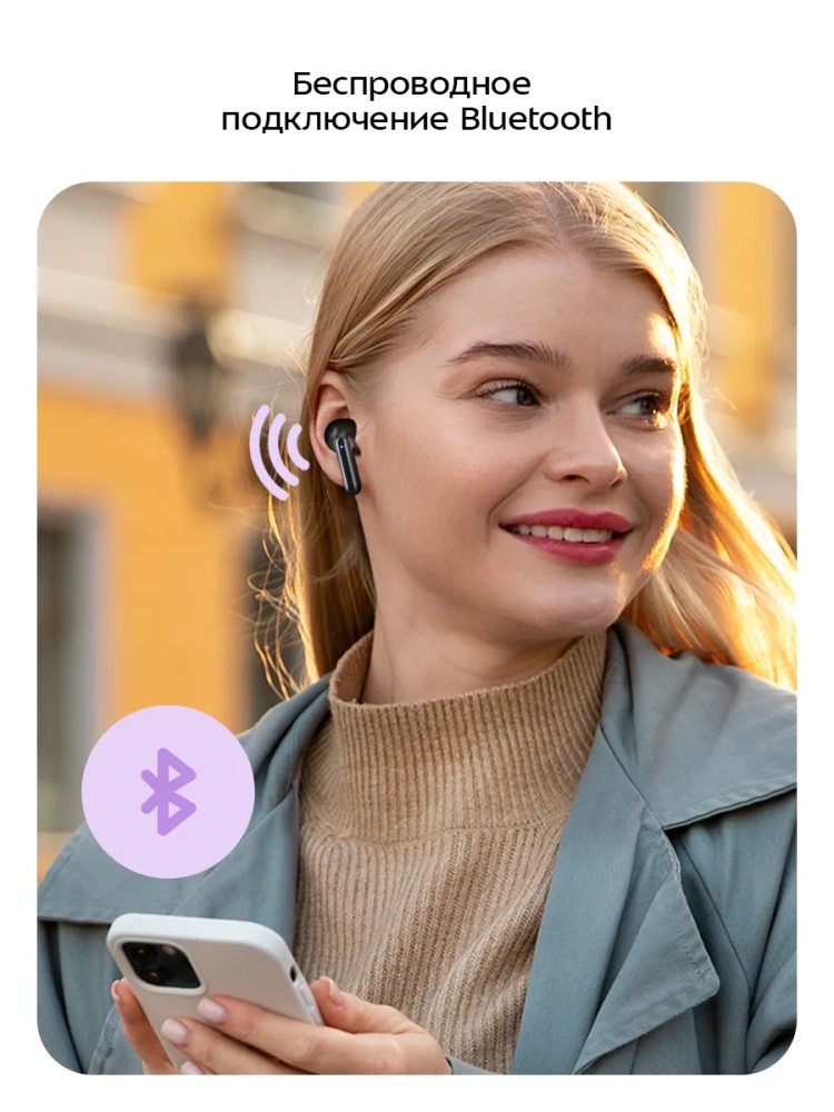Встроенный микрофон позволяет вам использовать наушники для мобильных разговоров или записи аудиосообщений. Беспроводные наушники соединяются с вашим устройством с помощью Bluetooth 5.3.