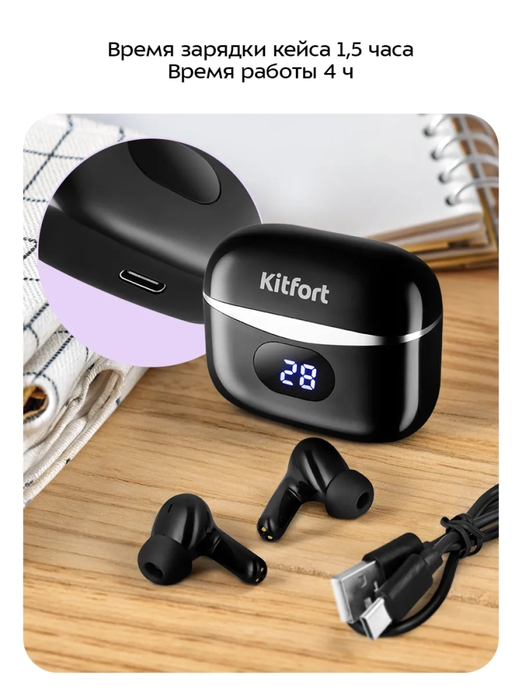 Беспроводные наушники Kitfort КТ-3722 позволят вам с удобством и комфортом слушать музыку, при этом провода не будут мешать и ограничивать движения, что особенно удобно при занятии спортом или любой другой активной деятельности. Вам не нужно использовать другое устройство, чтобы переключать аудиофайлы и ставить их на паузу, а также останавливать и снова запускать воспроизведение, менять громкость или отвечать на звонок, ведь все управление сенсорное и осуществляется касанием специальной зоны на наушниках.
