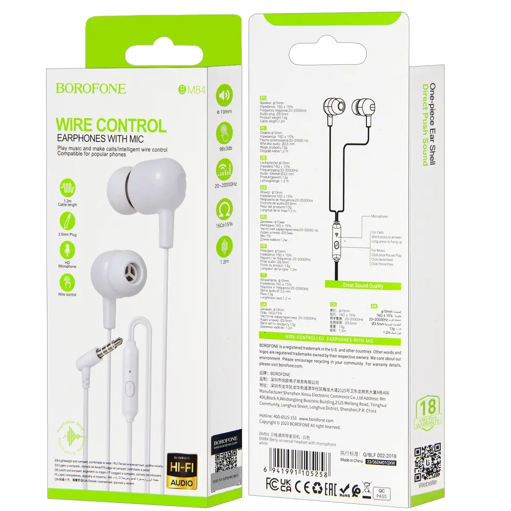 Наушники BM84 BOROFONE белые