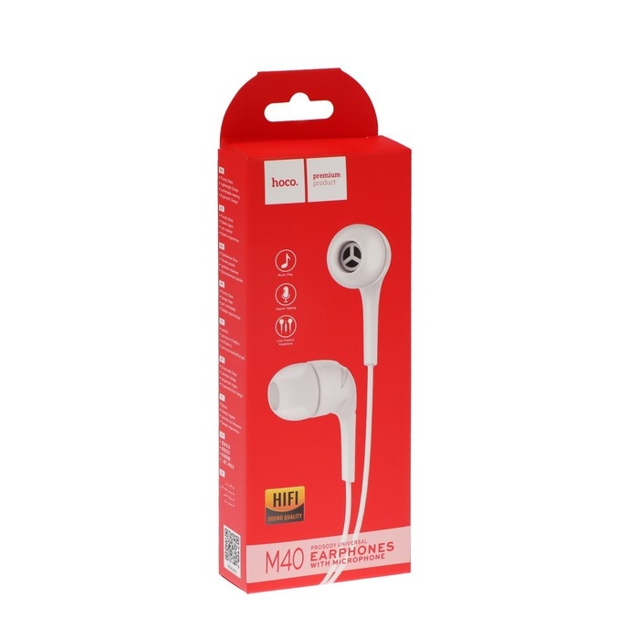 Наушники Hoco M40, проводные, вакуумные, микрофон, Jack 3.5 мм, 1.2 м, белые