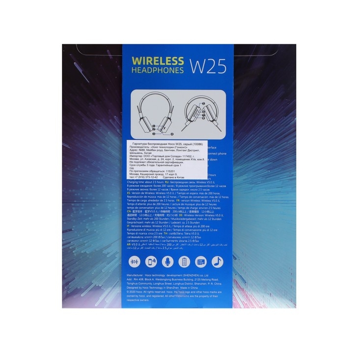 Наушники Hoco W25, беспроводные, накладные, BT5.0, 300 мАч, микрофон, серые