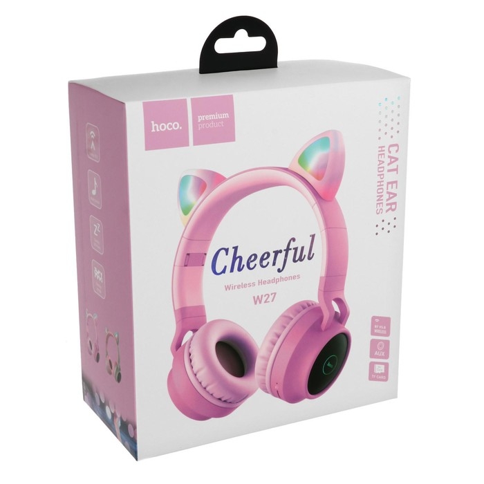 Наушники Hoco W27, беспроводные, накладные, микрофон, BT 5.0, 300 мАч, подсветка, розовые