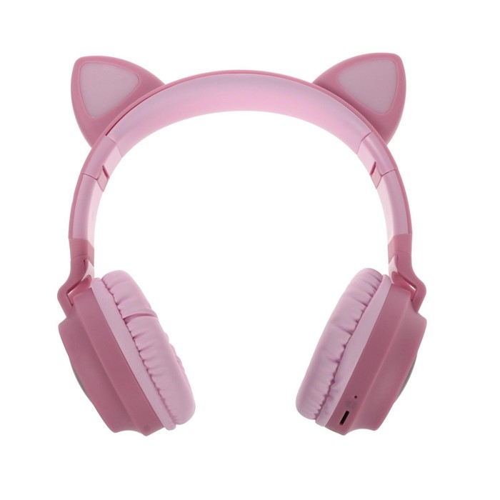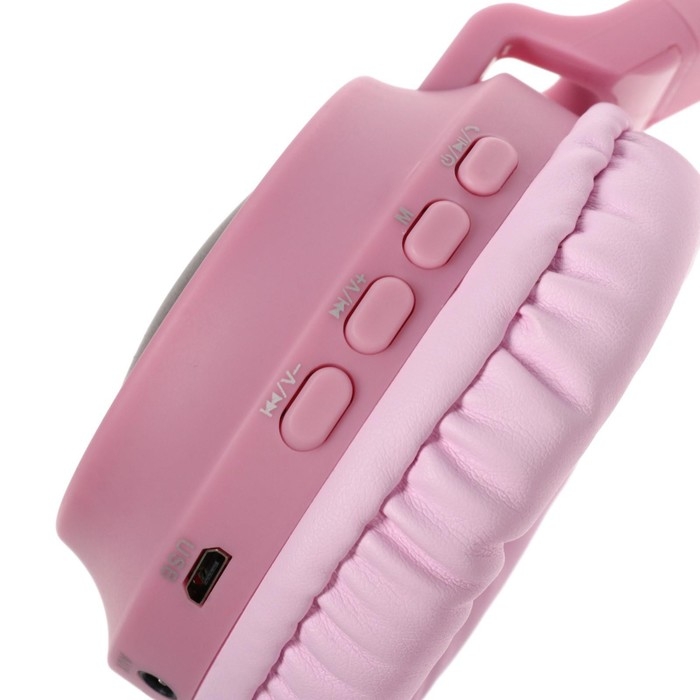 Наушники беспроводные Y08R, накладные, детские, BT 5.1, подсветка, 400 мАч, розовые
