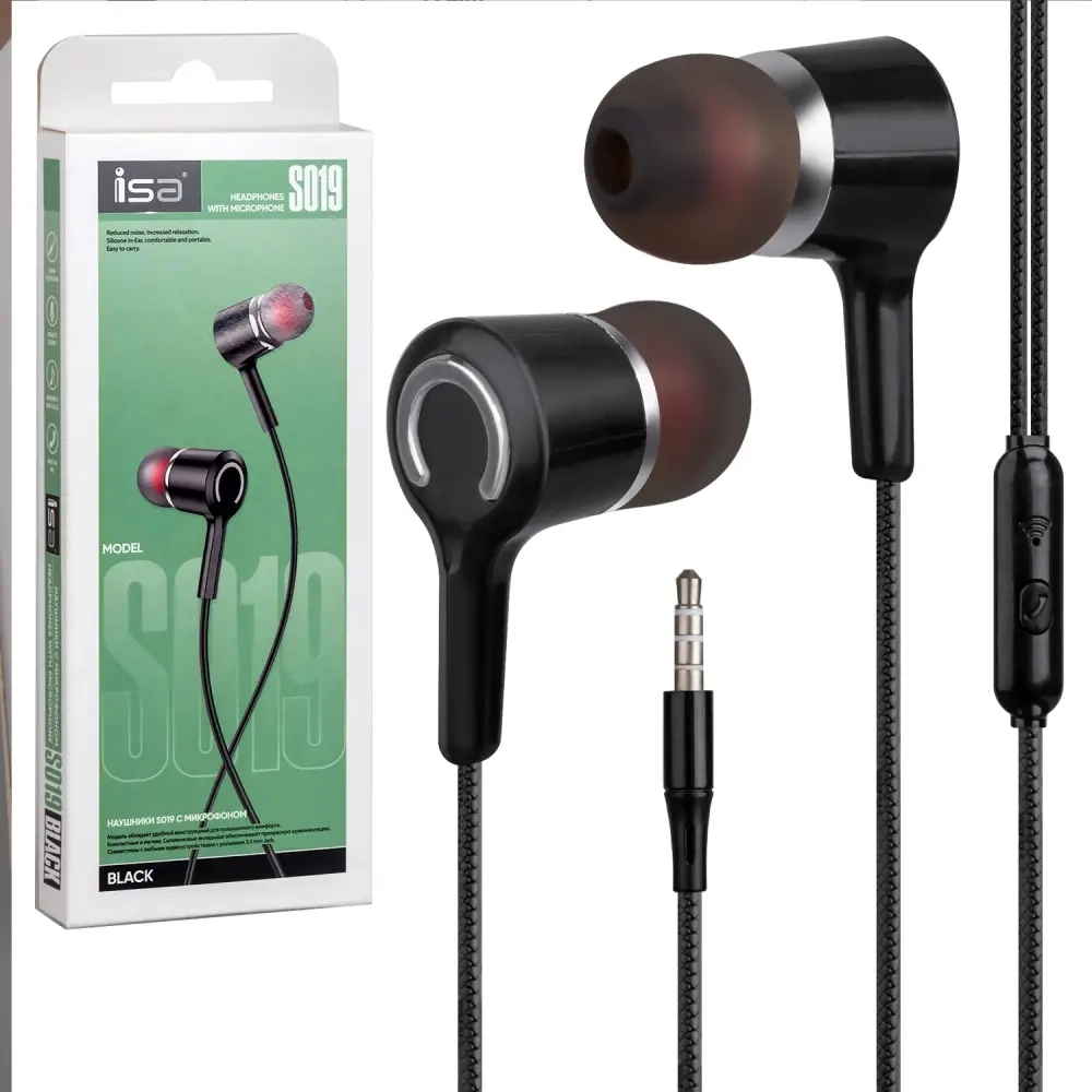 Наушники ISA S019 с микрофоном черные