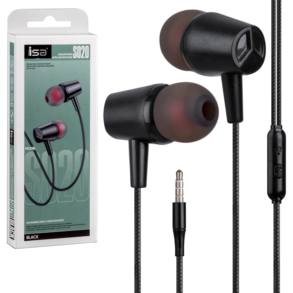 Наушники ISA S020 с микрофоном черные