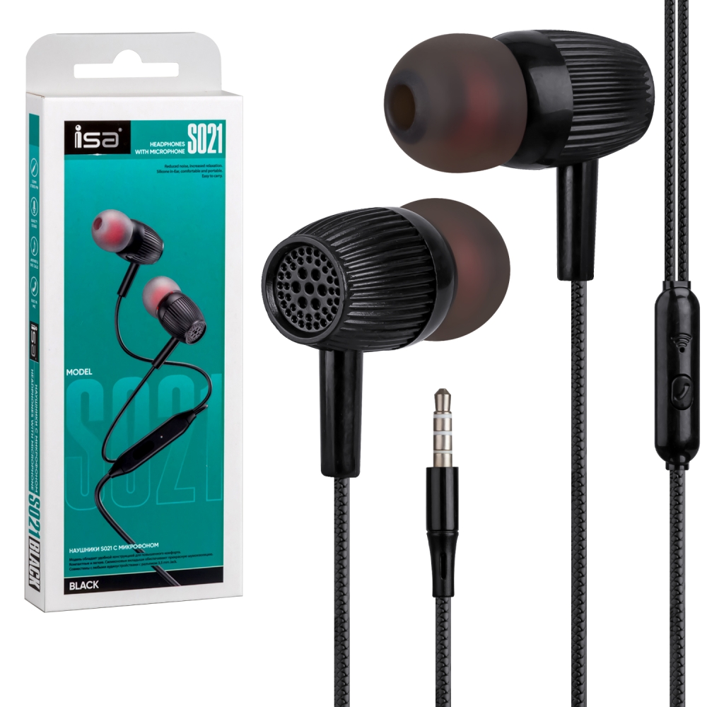 Наушники ISA S021 с микрофоном черные