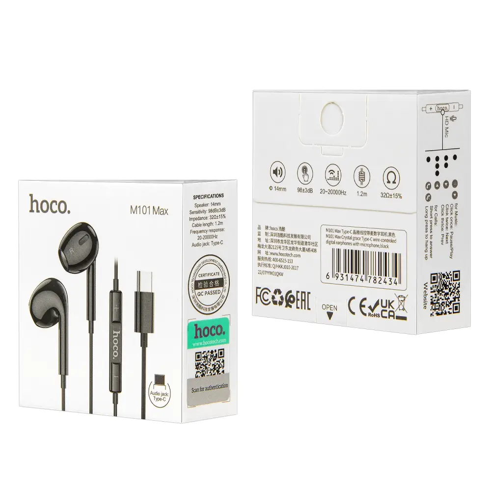 Модель Наушников Hoco M101 max имеет корпус с удобными вкладышами для комфортной посадки в ушах, соответствующие Earpods. Оснащены динамиками с прекрасной акустической стерео - системой для качественного звука и поддерживает опцию управления звонками. С помощью многофункциональной кнопки можно принимать вызовы или менять треки при прослушивания музыки. Гарнитура подходит и для детских, и для взрослых ушей. Портативные мобильные наушники удобны во время активных занятий спортом. Игровые наушники имеют провод с штекером Type-c. Плотная посадка в ухе подавляет внешний шум и даёт идеальное звучание. Такие наушники хорошо подойдут для просмотров фильмов планшете. Они совместимы со всей современной техникой и электроникой - плеерами, телефонами, компьютерами. Аксессуар станет прекрасным подарком ребёнку, и взрослому, мальчику и девочке, мужчине и женщине - другу, любимой девушке, коллеге или брату.
