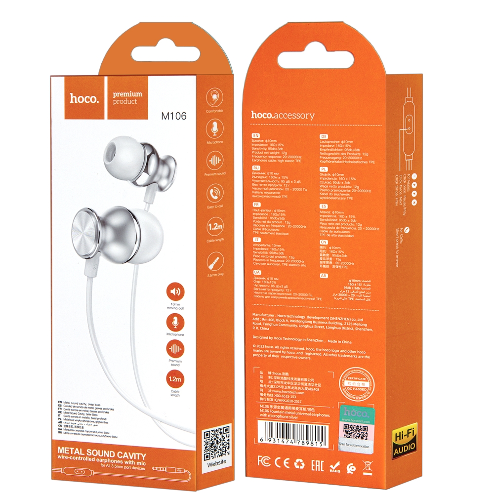 Наушники M106 HOCO Серебро