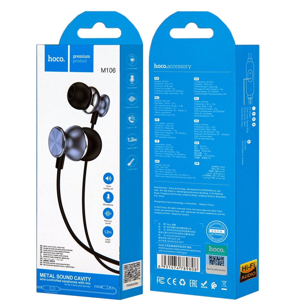 Наушники M106 HOCO серые