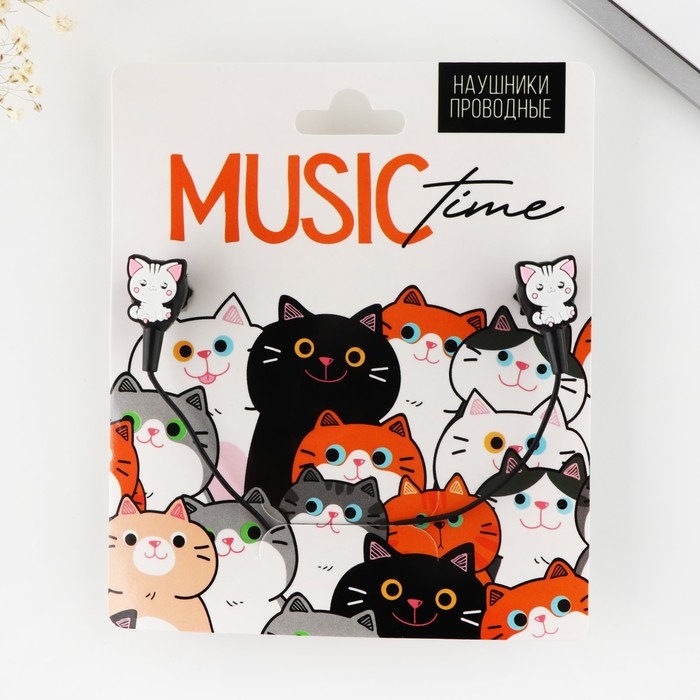 Наушники на открытке "Котики", мод. OBT 1.4, 120 см
