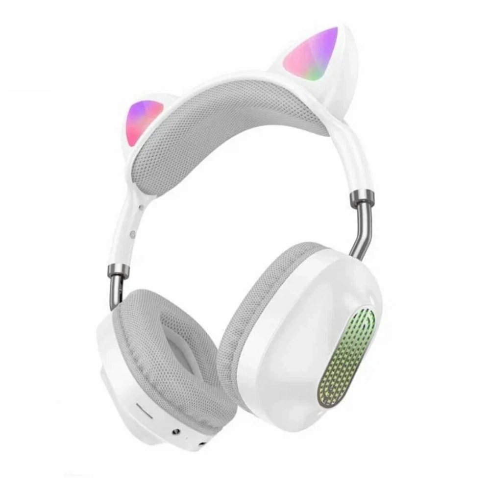 Беспроводные наушники с ушками и подсветкой — это стильный и безопасный аксессуар, который станет любимым гаджетом вашего ребенка. Наш товар официально проверен и сертифицирован, поэтому вы можете быть уверены в его подлинности и высоком качестве. Светящиеся кошачьи ушки с подсветкой превращают обычное прослушивание музыки в настоящее шоу. Благодаря регулируемому размеру наушники подходят детям разного возраста, а складная конструкция делает их удобными для хранения и переноски. Наушники можно подключить по Bluetooth, через AUX-кабель или использовать SD-карту. Встроенный микрофон позволяет принимать звонки и общаться без лишних движений. Подходят для смартфонов (Android и iPhone), планшетов, компьютеров и даже игр. Аккумулятор ёмкостью 400 мАч обеспечивает до 7 часов музыки или общения. Зарядка занимает всего 2 часа через современный USB Type-C кабель (входит в комплект).