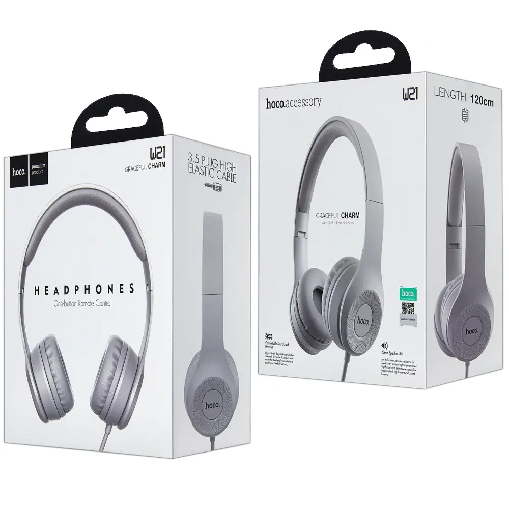 Наушники W21 Graceful charm проводные с микрофоном HOCO серые