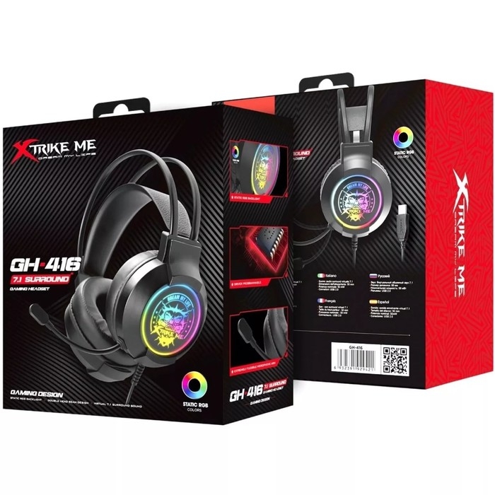 Наушники Xtrike Me GH-416, игровые, полноразмерные, подсветка, mic, USB, 2 м,чёрный