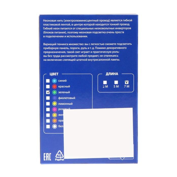 Неоновая нить Cartage для подсветки салона, адаптер питания 12 В, 7 м, зеленый