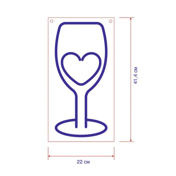 Неоновая вывеска «Бокал» 41.4 × 22 см, 12 В