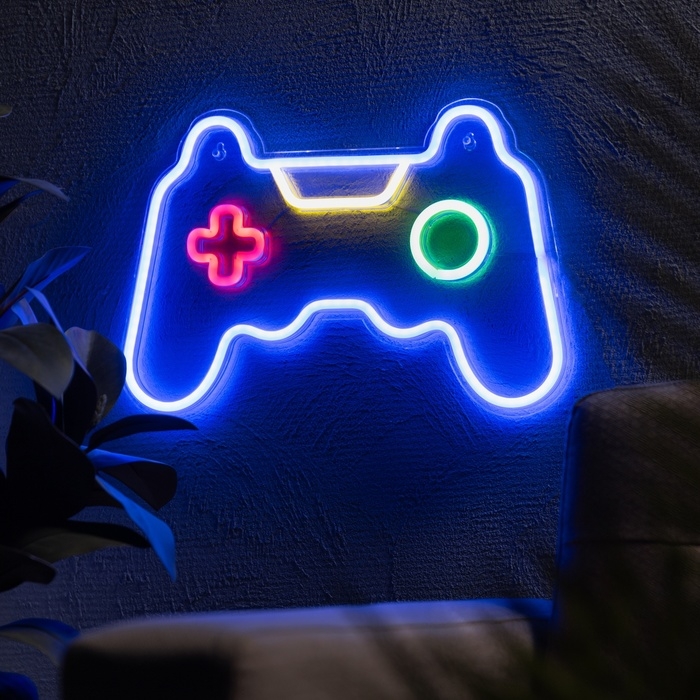 Неоновая вывеска «Геймпад» 40.5 x 28 см, USB, свечение сине-красно-зелено-тепло белое