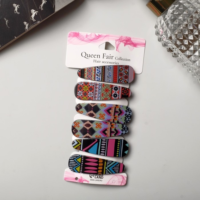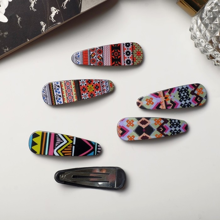 Невидимка для волос "Герти" (набор 6 шт) орнаменты, 5,5 см