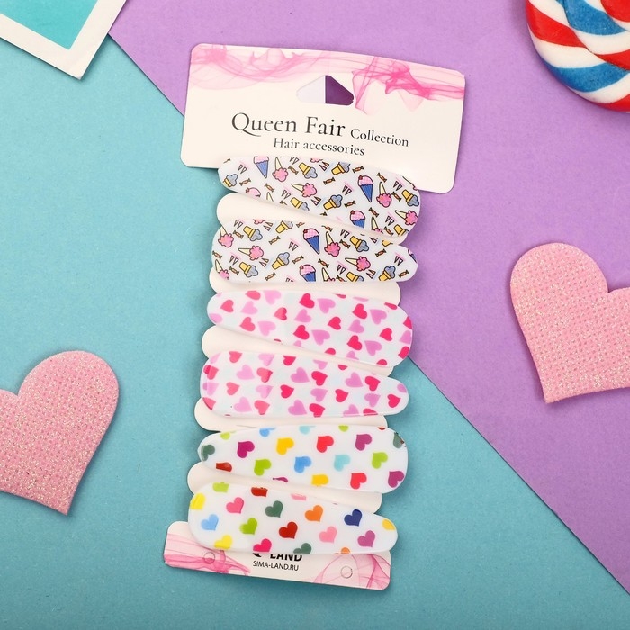 Невидимка для волос "Герти" (набор 6 шт) сердечки и мороженое, 5,5 см