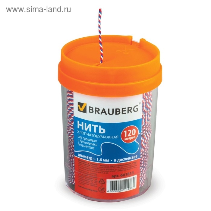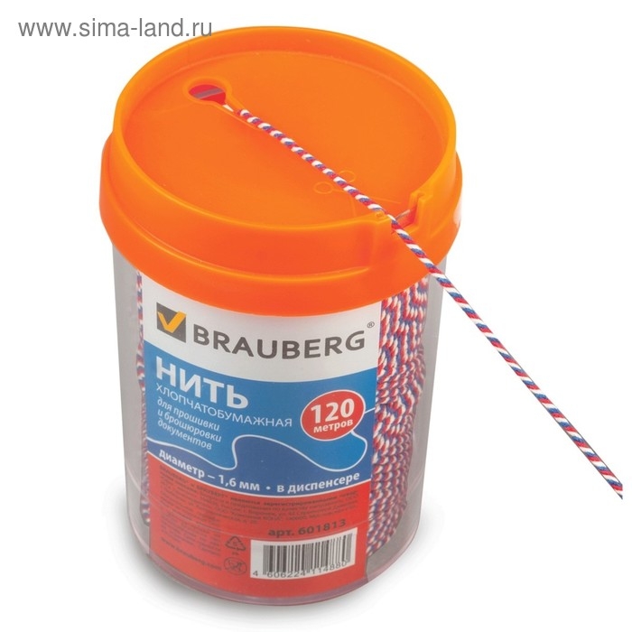 Хлопчатобумажная нить BRAUBERG широко применяется в рукоделии, декорировании, плетении, для упаковки и обвязки товаров, почтовых посылок. Отлично подходит для опечатывания и прошивки документов в банках, офисах, нотариальных конторах. Изготовлена из отборного хлопкового волокна, скрученного в тонкие пряди. Представляет собой нить диаметром 1,6 мм скрученную и намотанную в бобину. Средний вес бобин составляет 0,175 кг при намотке 120 метров, разрывная нагрузка - 6 кгс, линейная плотность - 700 текс. Хлопчатобумажная нить обладает высокой прочностью, мягкостью, легко вяжется в узлы, не накапливает статическое электричество, не боится высоких температур и холода. Широко применяется в рукоделии и в качестве элементов декора, для бытовых и хозяйственных нужд, упаковки и обвязки товаров, почтовых посылок, подвязки растений и деревьев. Отлично подходит для декорирования корзинок, вазочек, шкатулок, плетения сумок, ковриков, украшений. Так же активно применяется для прошивки документов в делопроизводстве. Благодаря проверенным качествам является незаменимым помощником в каждом доме и дачном хозяйстве. Экологически безопасна.