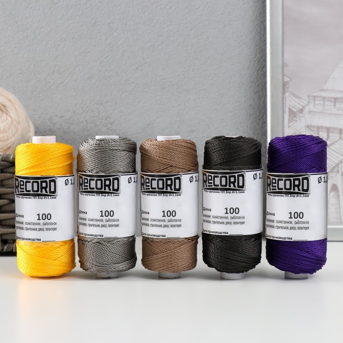Нить крученая ПП 3пр d=1.1мм (100, сер, черн, желт, беж, фиол, Ц4"набор 5 шт)