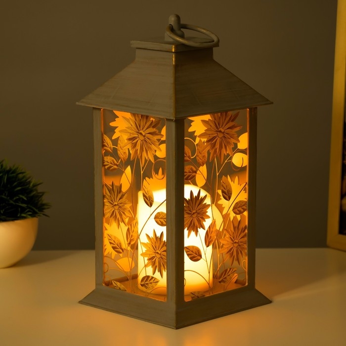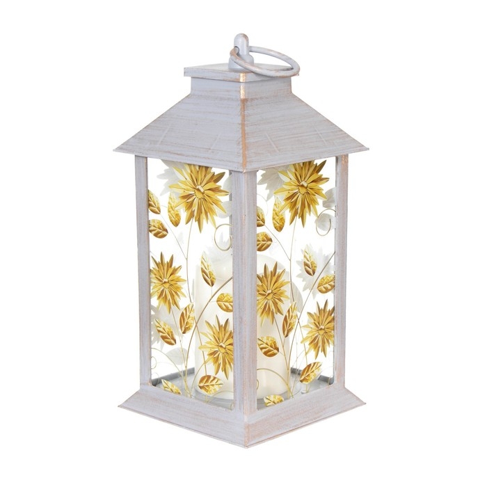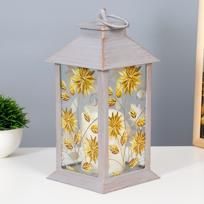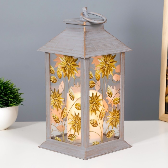 Ночник "Цветы" LED от батареек 3хААА серой с золотой патиной 14х14х29,5 см RISALUX