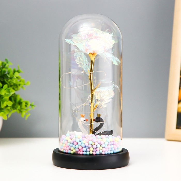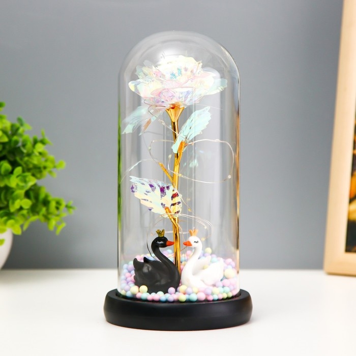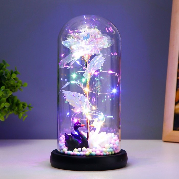 Ночник колба "Цветок и лебеди" LED от батареек 3хААА 11х11х22 см