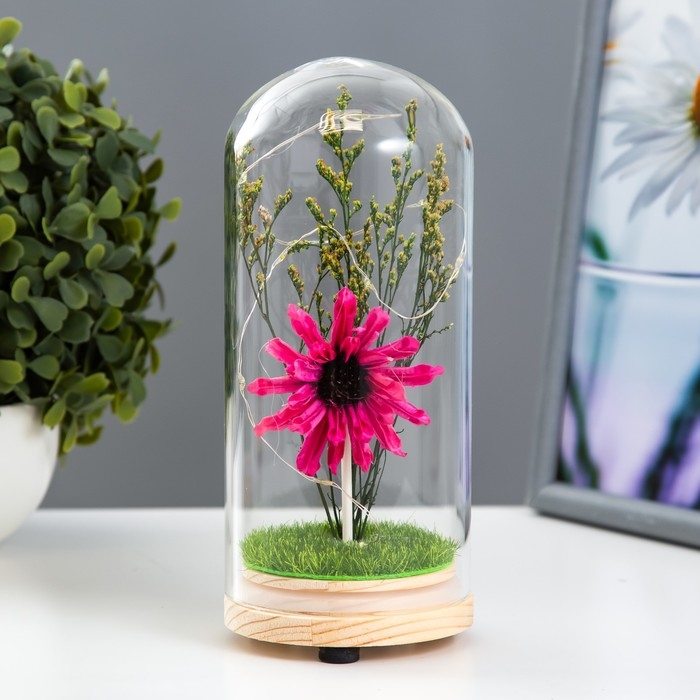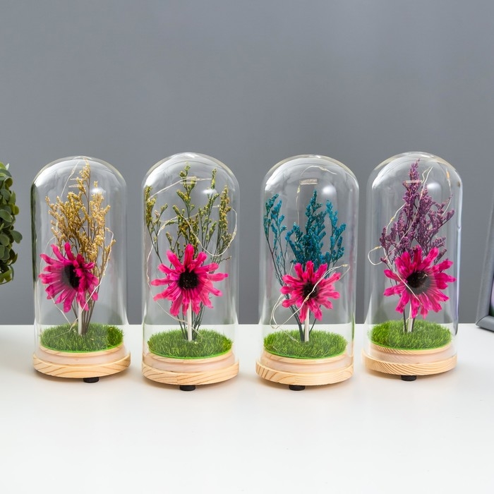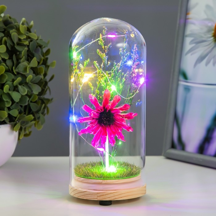 Великолепный ночник и подарок в одном аксессуаре. Этот вечный цветок не вянет и не требует особого ухода. Такие композиции часто применяют во флористике, упаковке подарков и дизайне интерьеров.