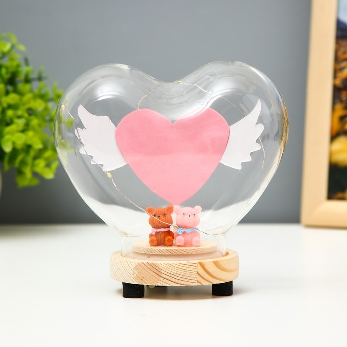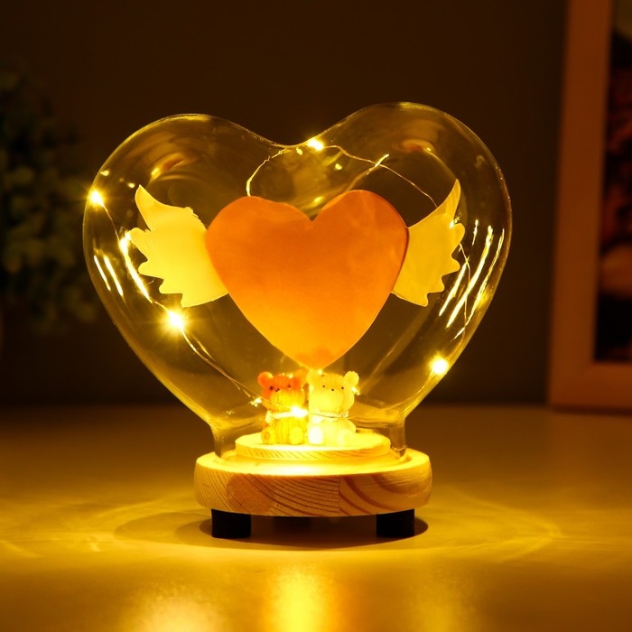 Ночник колба "Сердце цветное" LED от батареек 3хLR44 13х7,2х12 см RISALUX