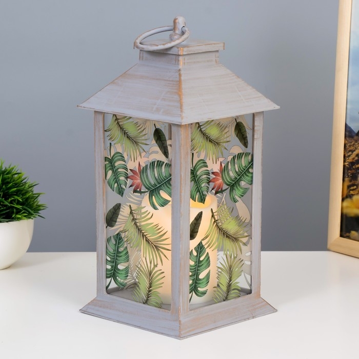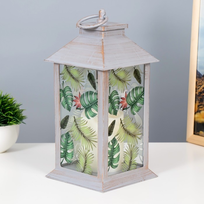 Ночник "Листья" LED от батареек 3хААА серый с золотой патиной 14х14х29,5 см RISALUX