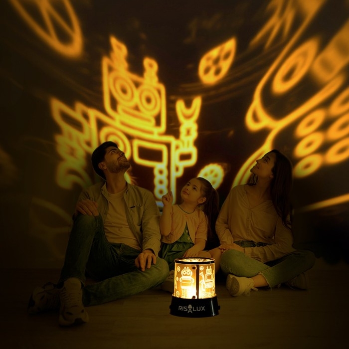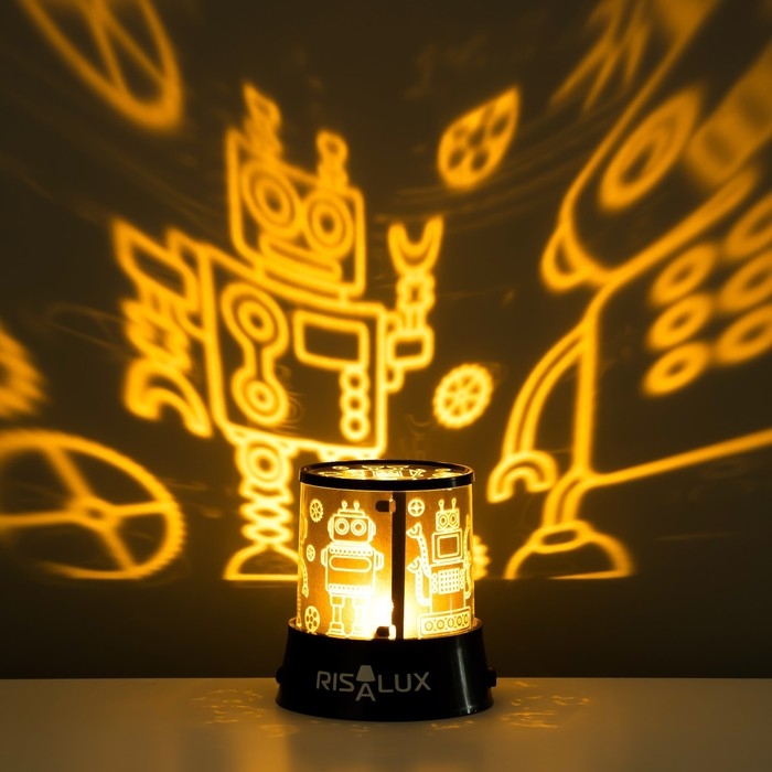 Ночник-проектор "Роботы" LED USB/от батареек черный 10,8х10,8х11,5 см RISALUX