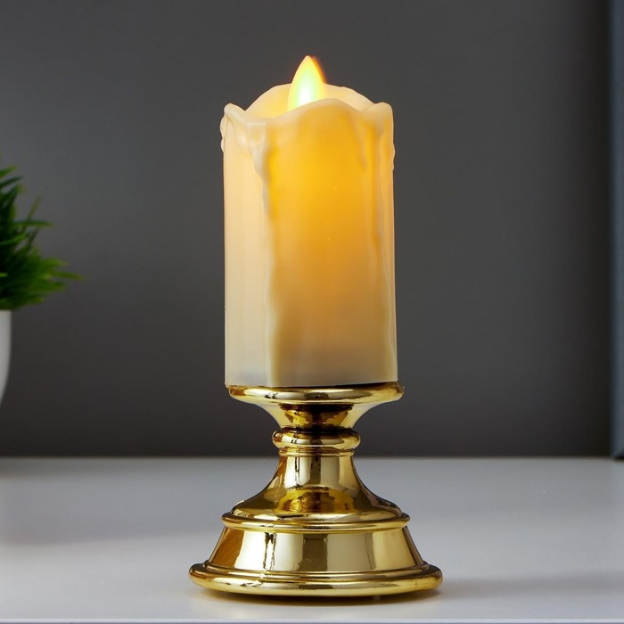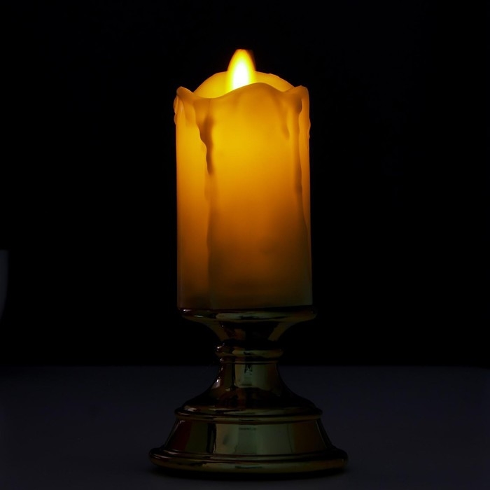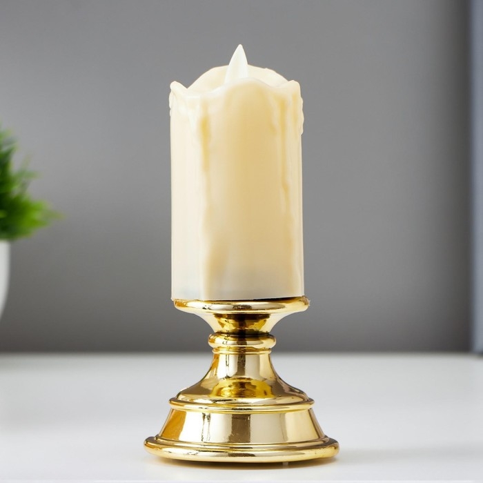 Ночник с эффектом живого пламени "Свеча малая" LED от батареек 2xААА золото 7х7х14,5 см RISALUX 516