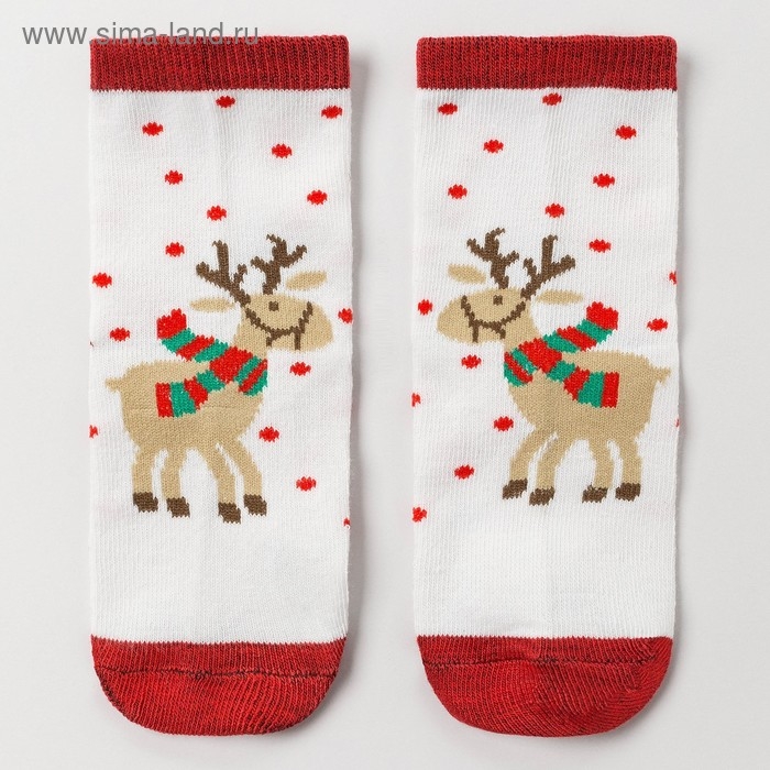 Носки детские «Новогодний олень», цвет белый, размер 14-16