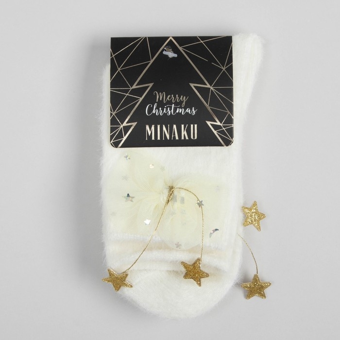 Носки махровые MINAKU с бантиком, цвет белый, размер 36-39 (23-25 см)